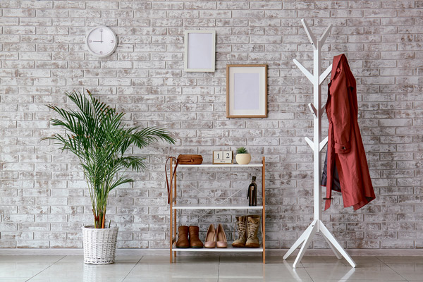 • Le portemanteau mural, qui se fixe au mur et qui comporte à la fois des crochets et des tablettes ou des casiers.