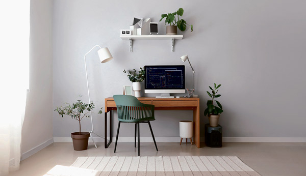 Afin de maximiser l’exposition de votre bureau à la lumière du soleil, laquelle est idéale pour la concentration, placez-le si possible à proximité d’une fenêtre. Veillez toutefois à ce que les rayons ne frappent pas directement votre écran d’ordinateur pour pouvoir lire adéquatement. Pour éviter l’éblouissement à certains moments de la journée, optez pour un store ou des rideaux opaques.